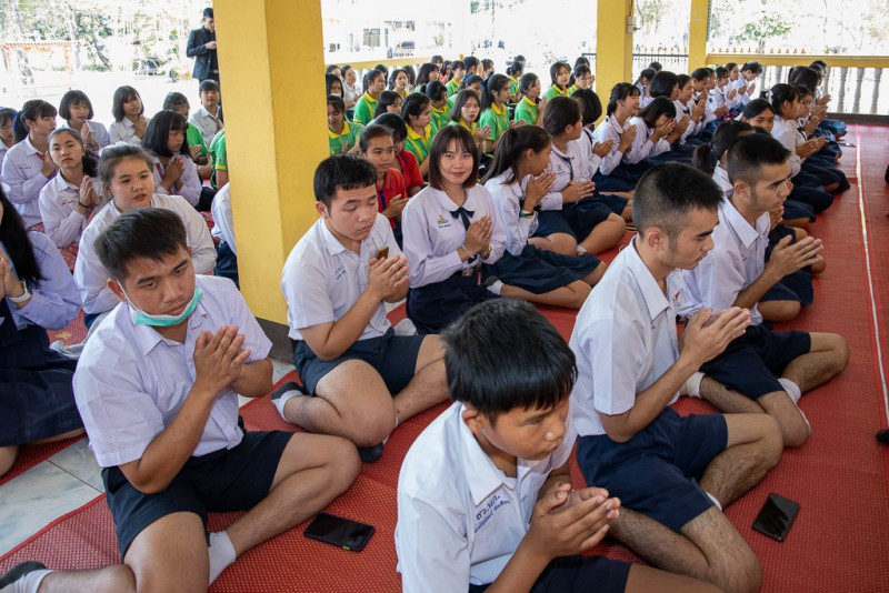 วันที่ 7 กุมภาพันธ์ 2563 นางวลักขณา สาระกิจจานนท์ ผู้อำนวยการโรงเรียน พร้อมด้วยคณะครู บุคลากร นำนักเรียนโรงเรียนเฉลิมพระเกียรติสมเด็จพระศรีนครินทร์ หนองบัวลำภู เข้าวัด ปฏิบัติธรรม เวียนเทียนถวายเป็นพุทธบูชา เพื่อปลูกฝังให้นักเรียนได้เห็นความสำคัฐของพระพุทธศาสนา และเป็นการปลูกฝังคุณธรรม จริยธรรมแก่นักเรียนให้เป็นคนดีอย่างยั่งยืน ณ วัดมหาชัย อำเภอเมือง จังหวัดหนองบัวลำภู